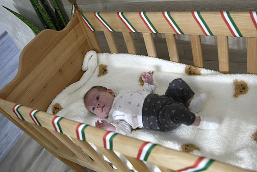 A családot a jeles alkalomból Gőder Imre falugazdász és Kovács Szabolcs szervezeti vezető köszöntötte, akik átadták számukra a bölcsőt.