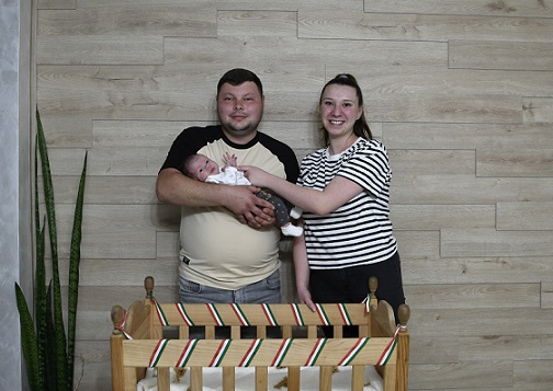 A családot a jeles alkalomból Gőder Imre falugazdász és Kovács Szabolcs szervezeti vezető köszöntötte, akik átadták számukra a bölcsőt.